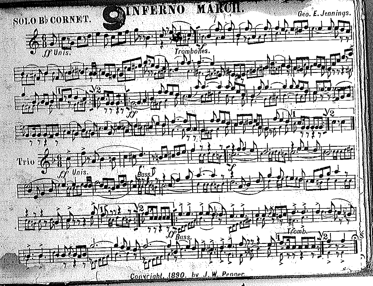 The small “perfect bound” band portfolios appear to date to pre WWII and contain ten of the Jennings marches. Most of the pieces are copyrighted around 1894. Also included are nineteen other march gems including some well known (King Cotton – JP Sousa himself!), RB Hall (The Red Men’s March w/ note “respectfully dedicated to the order of RED MEN”), a Wagner, and the CS Grafulla Washington Grays March, just in time for Spring Training.CD Review: Christmas Cheers by Straight No Chaser